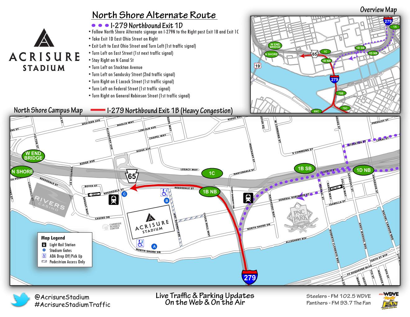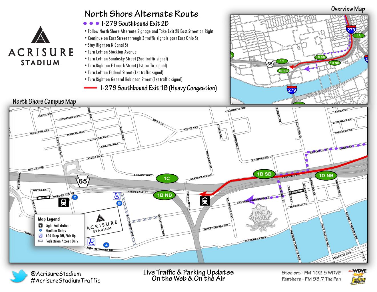 To avoid heavy congestion on I-279 Exit 1B North Shore during event days, please use these Alternate Routes.
